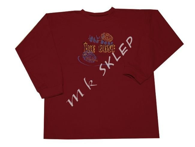 - Bluzka bawełniana z długim rękawem - marki "MK GOLIŃSCY", ze ściągaczami przy szyi i rękawach, z niewielkim haftem lub nadrukiem na przodzie - o raczej uniwersalnej tematyce, 100% bawełna, o gramaturze 140.