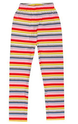 Bawełniane legginsy polskiego producenta "MK GOLIŃSCY" z dodatkiem elastanu, dziane w bajeczne, kolorowe paski i paseczki. W pasie ściągane gumką. Lekko rozciągliwy, bardzo przyjemny materiał.