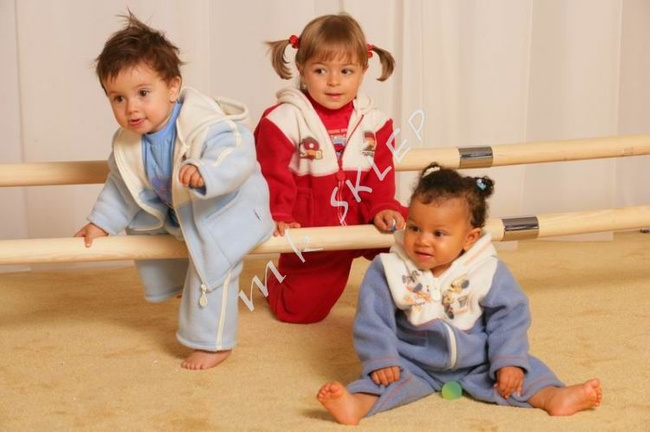 - Prosty komplet polarowy z karczkiem, z kapturem, zapinany zamkiem; na kremowym karczku są nadruki, w wesołe wzory (kotki, pieski itp.). Komplety są uniwersalne- zarówno dla dziewczynki jak i dla chłopca.