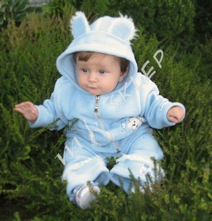 - Komplecik polarowy z kapturem produkcji "MK GOLIŃSCY", zapinany zamkiem; z przodu haft zwierzątka oraz mała kieszonka obszyta futerkiem. Futerko znajduje się również na kurtce i nogawkach - w zależności od tego jakie zwierzątko przedstawia.