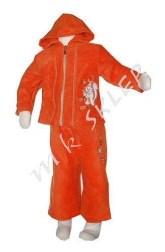 - Komplet polarowy z wypustką biegnącą wzdłuż rękawów i spodni, oraz ozdobnie wzdłuż zamka na przodzie - całość dobrana kolorystycznie. Bluza z kapturem, haftowana na kurtce oraz spodniach. Spodnie z elastyczną talią.